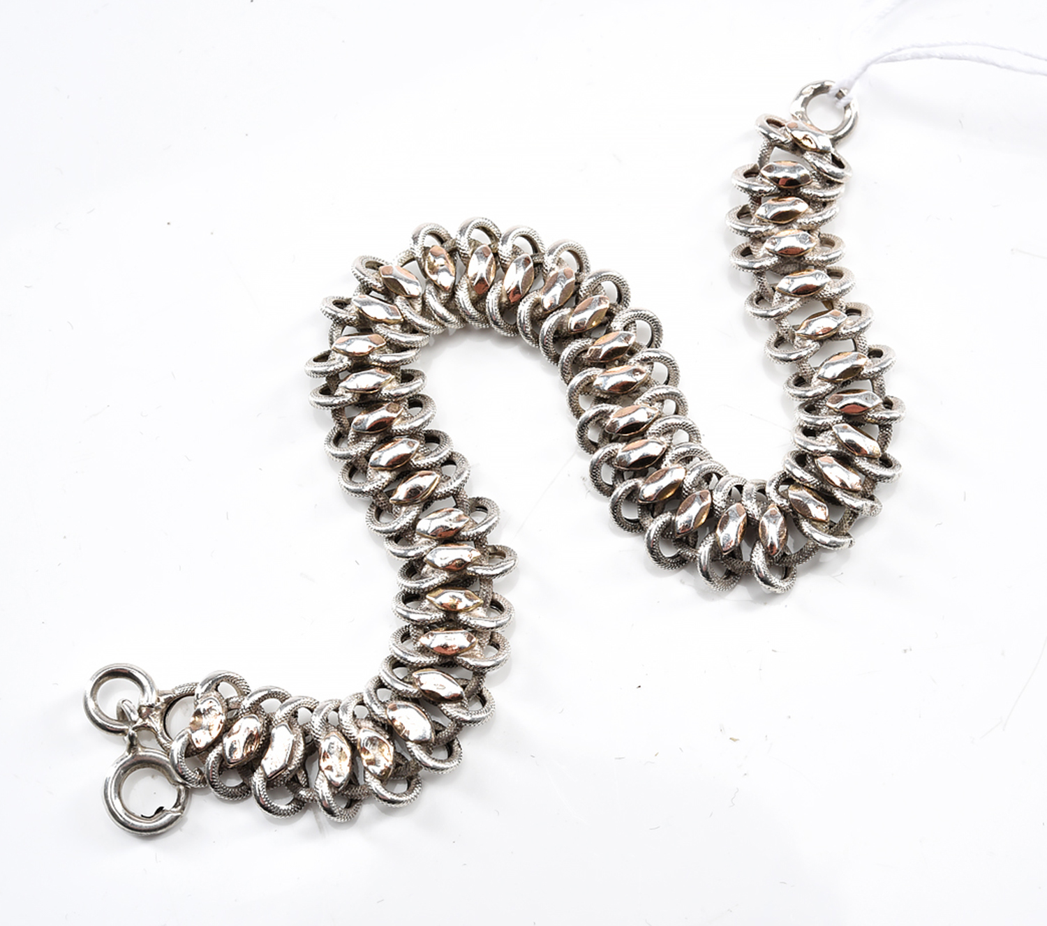 A FRENCH FANCY LINK BRACELET IN SILVER, HALLMARKED, TOTAL LENGTH 180MM