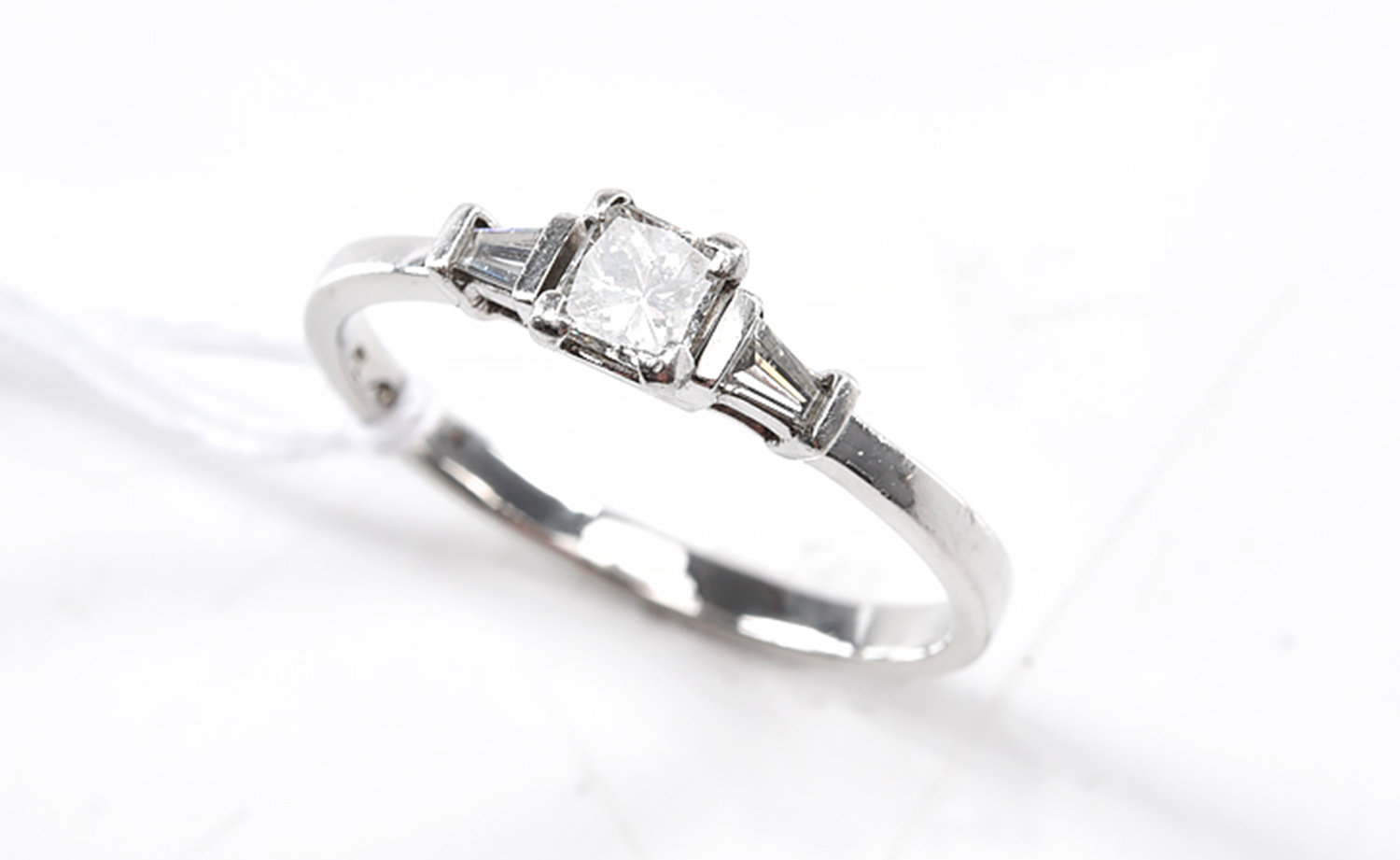 A DIAMOND SET RING IN PLATINUM, TOTAL DIAMOND ESTIMATED 0.45CTS, SIZE S, 3.8GMS