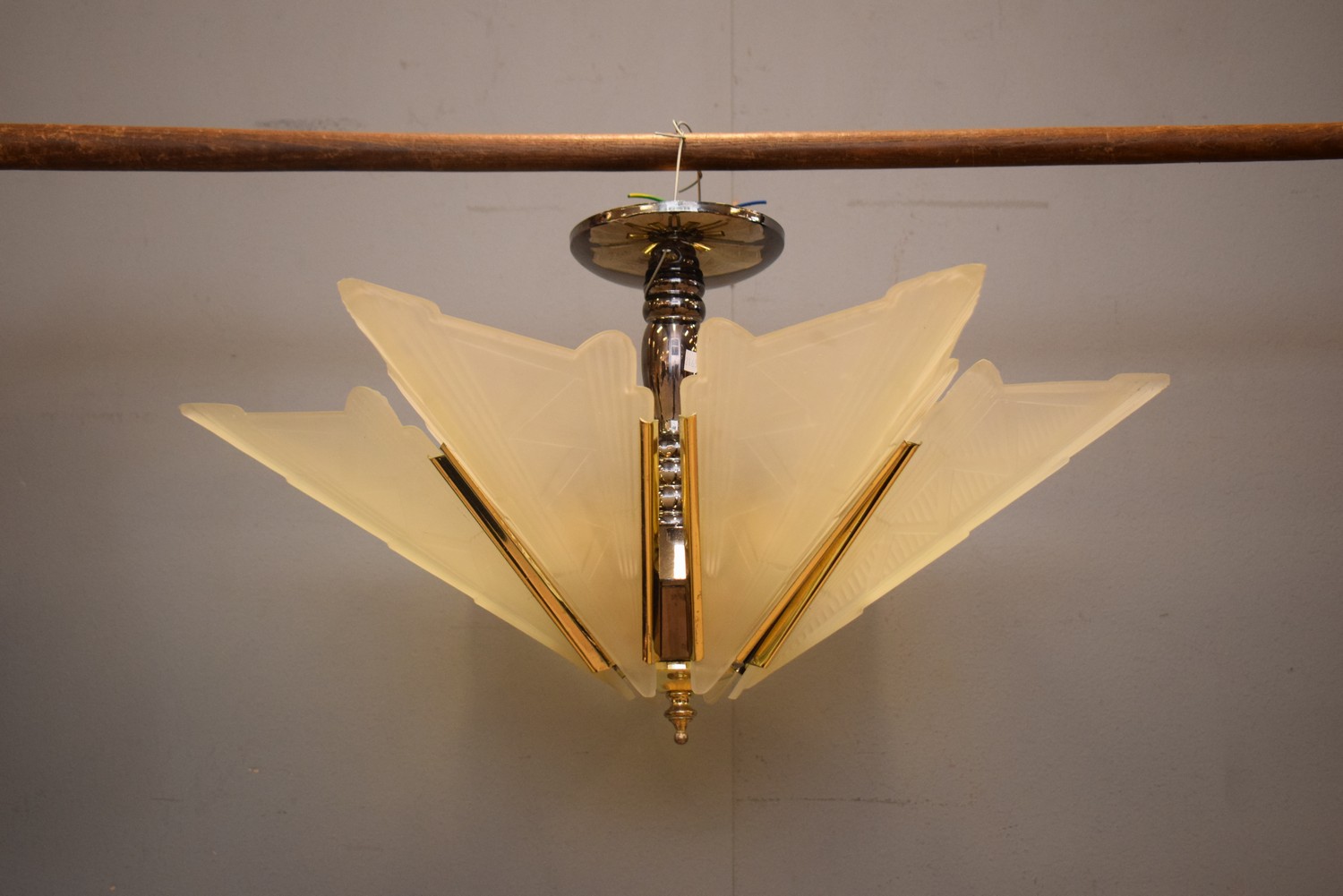 AN ART DECO STYLE LIGHT FITTING WITH SLIP SHADES (57 CM D)