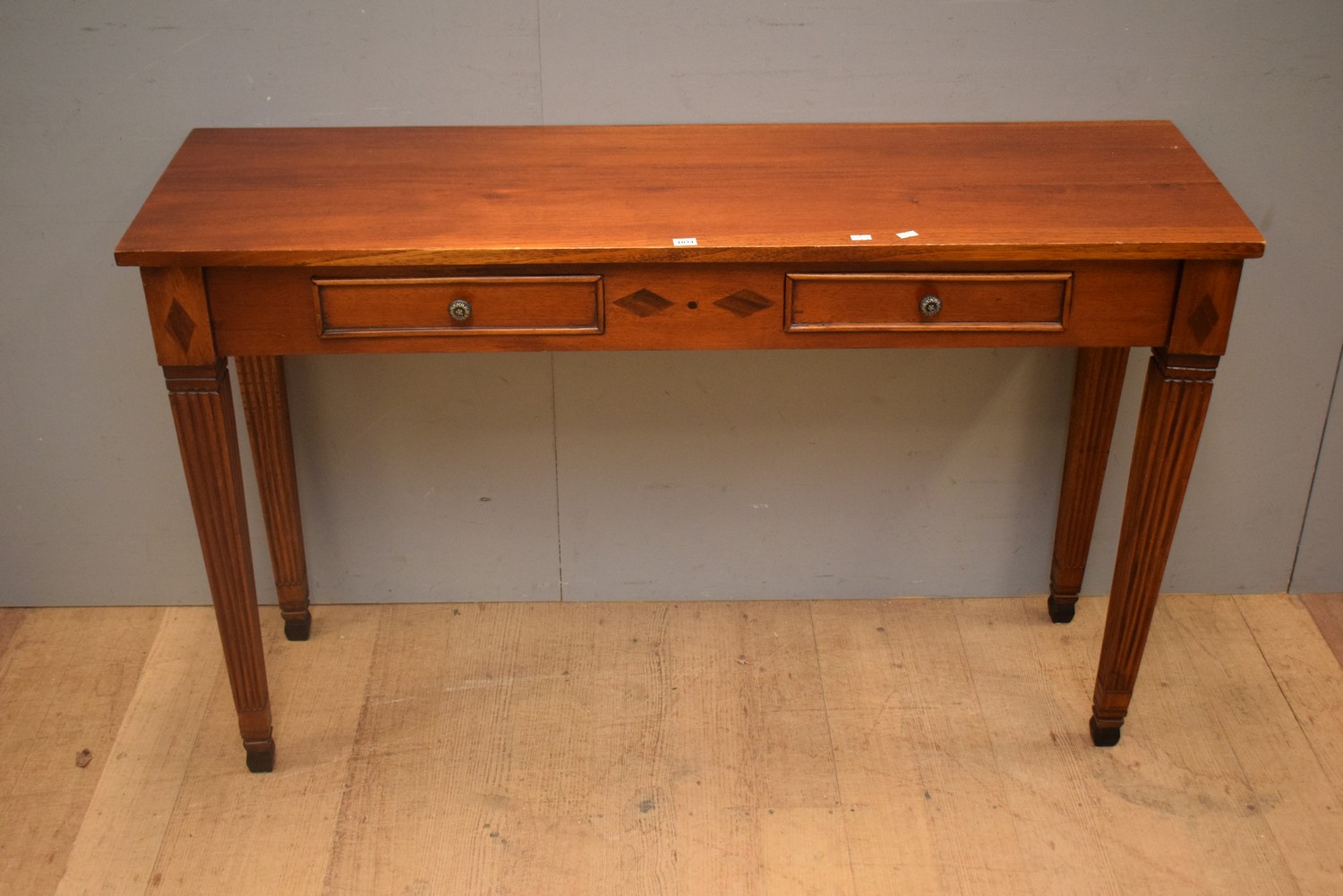 A TIMBER TWO DRAWER CONSOLE (74H X 125W X 39D CM)