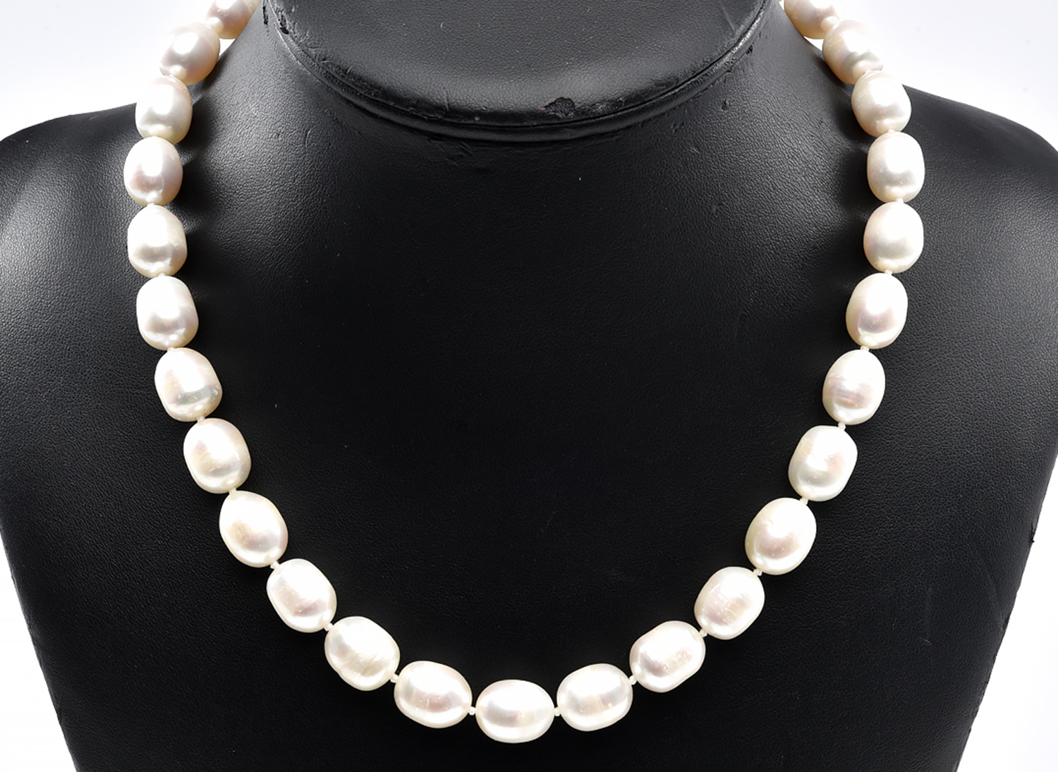A STRAND OF FRESHWATER PEARLS TO A SILVER CLASP, TOTAL LENGTH 480MM