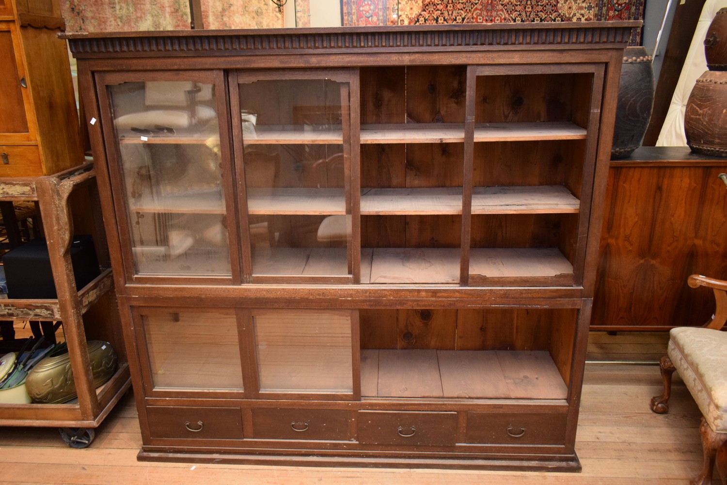 A SUBSTANTIAL JAPANESE GLASS FRONTED TANSU (A/F) (168H X 183W X 46D CM) (PLEASE NOTE THIS ITEM MUST BE REMOVED BY CLIENTS OR CARRIERS AT THE CUSTOMERS EXPENSE)