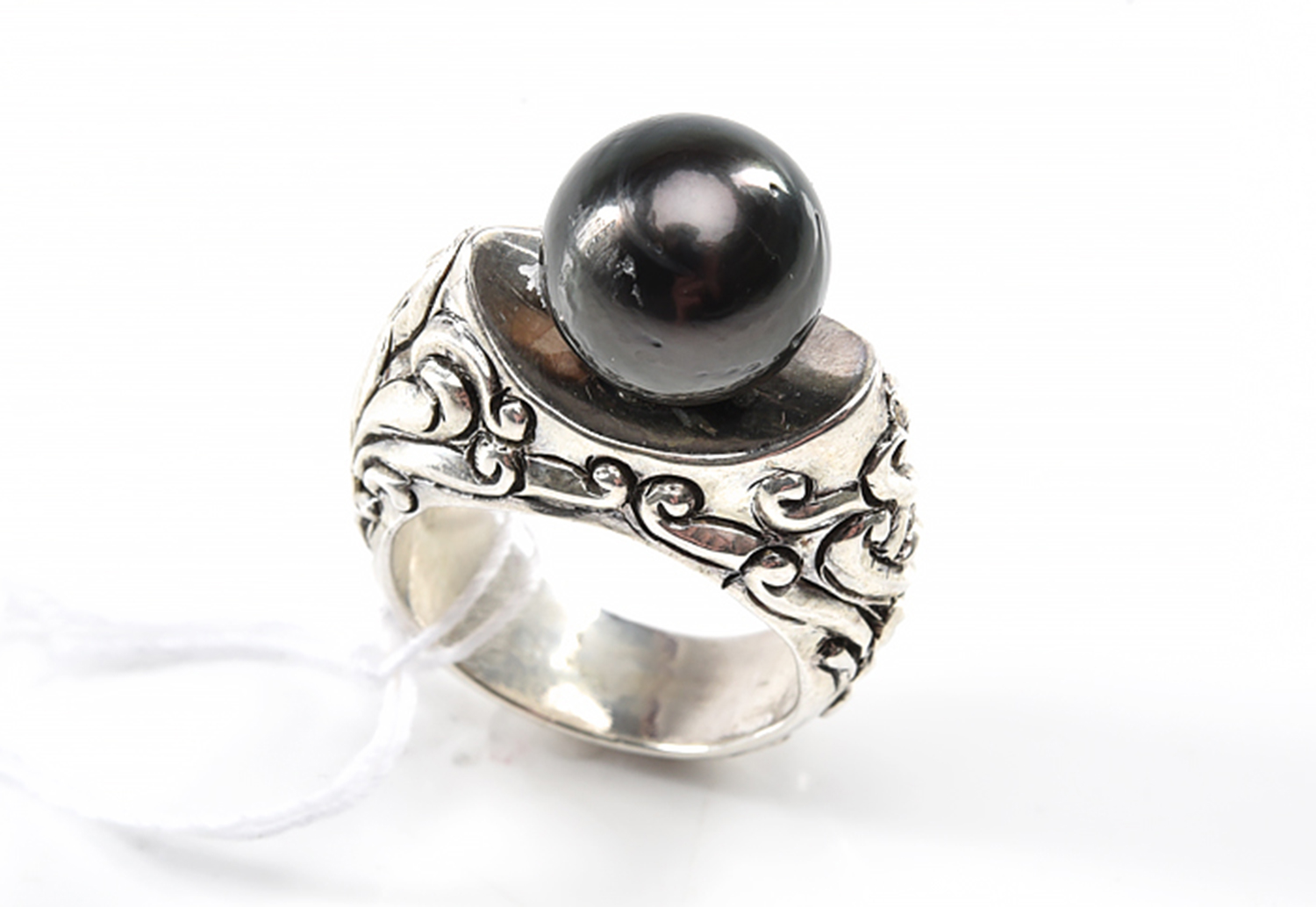 A TAHITIAN PEARL RING IN STERLING SILVER, THE PEARL MEASURING 10.7MM, SIZE L