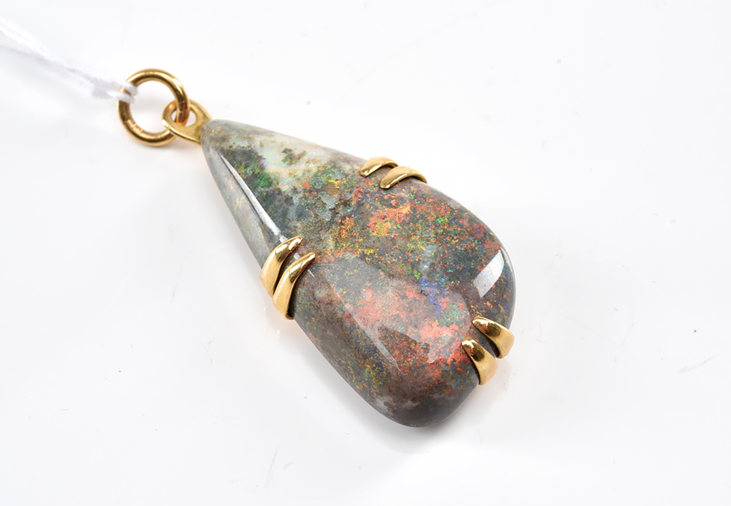 A MATRIX OPAL PENDANT IN 22CT GOLD, TOTAL LENGTH 40MM (INCLUDING BALE)