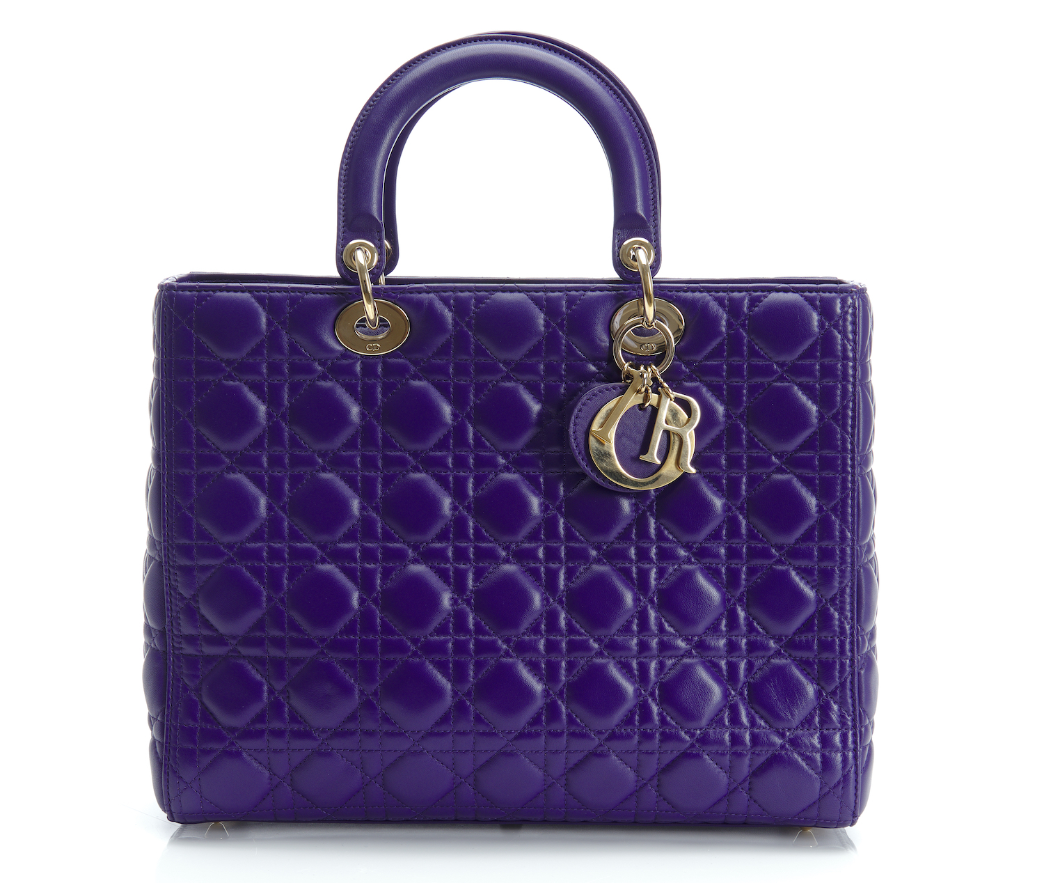 Styled in purple Cannaged leather with gold metal hardware and Dior charm, having a detachable leather shoulder strap, 32 x 25 x 9cm.