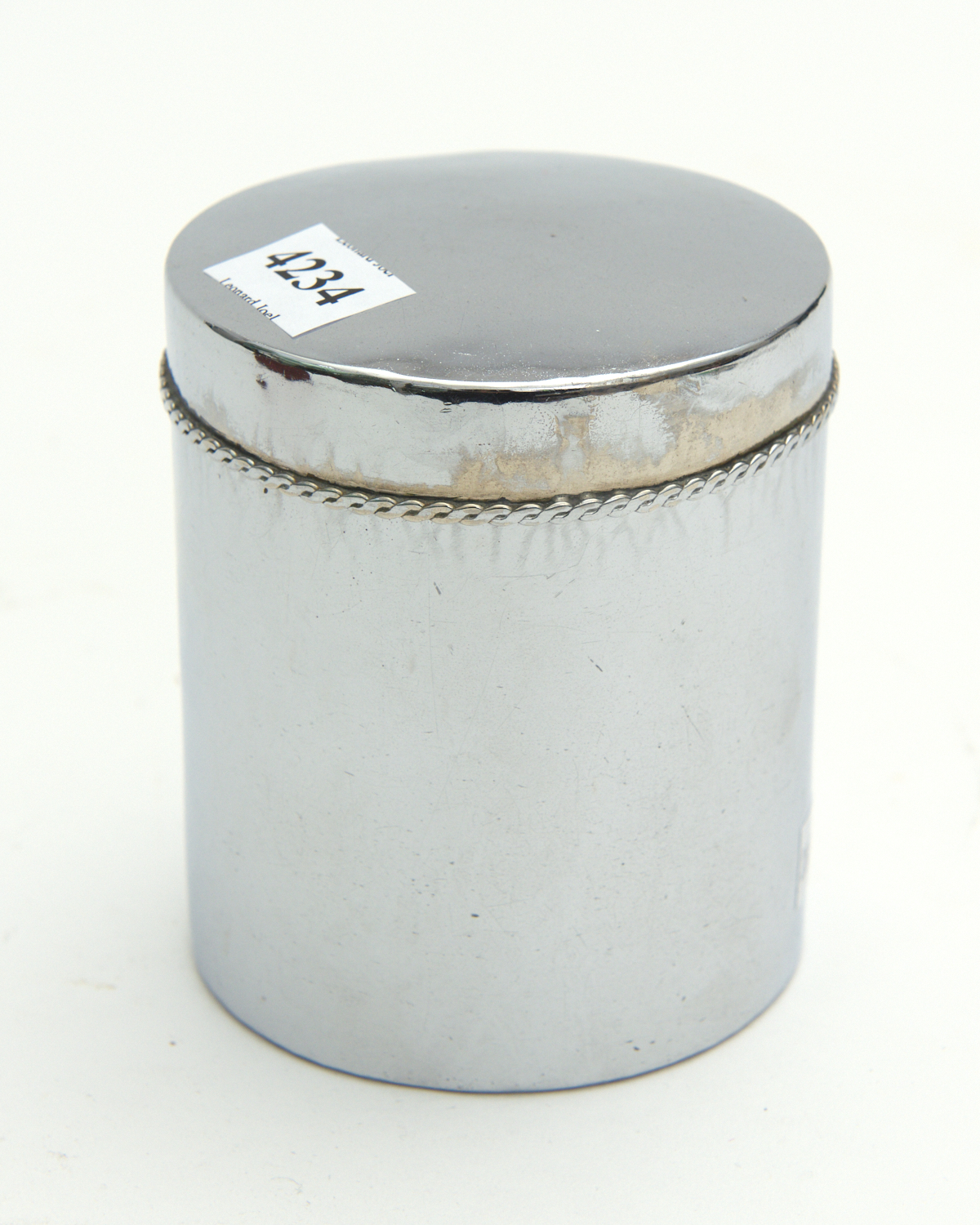 A SILVERPLATE CANISTER, KESWICK SCHOOL C 1900