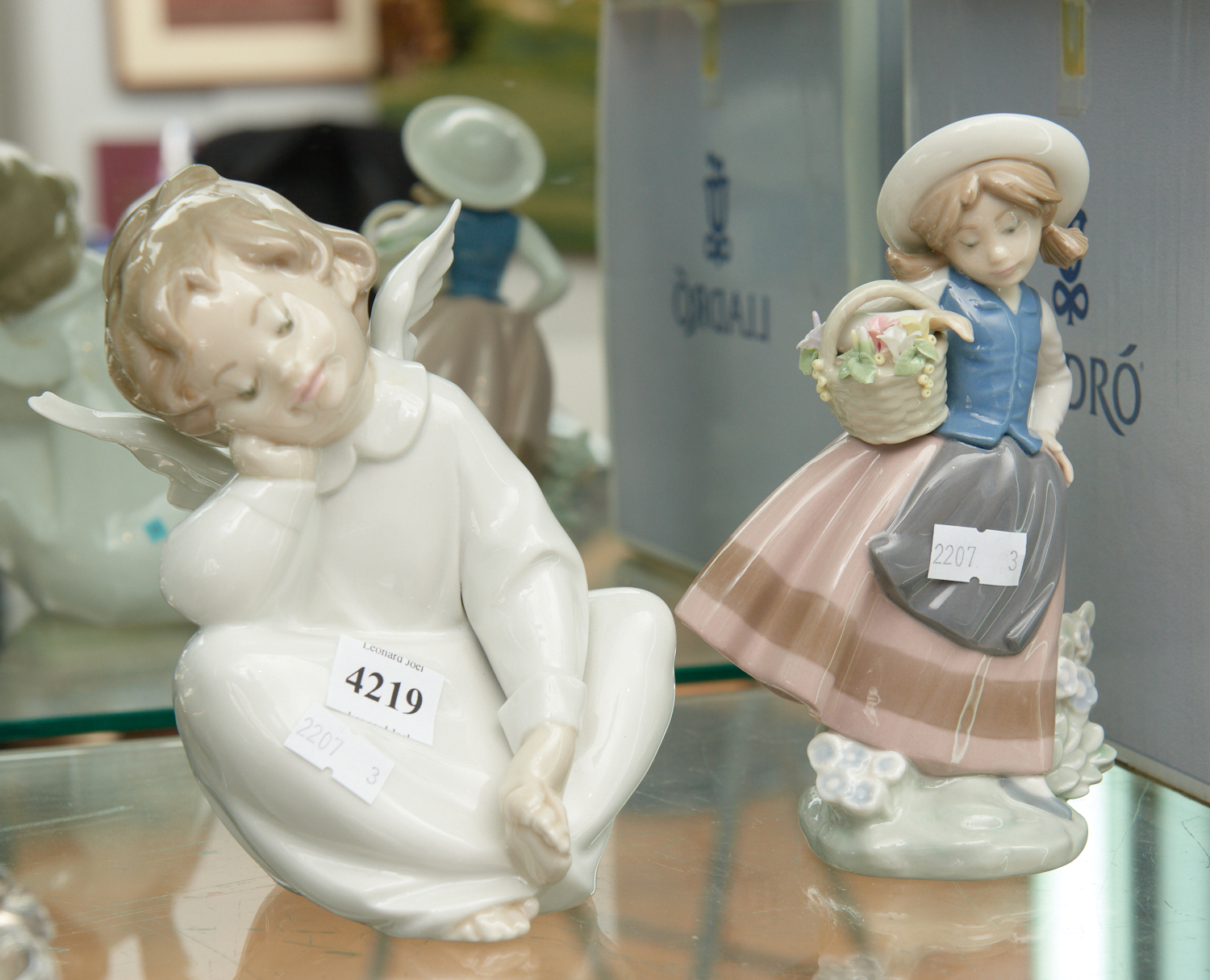 TWO LLADRO FIGURES, GIRL WITH FLOWERS AND AN ANGEL