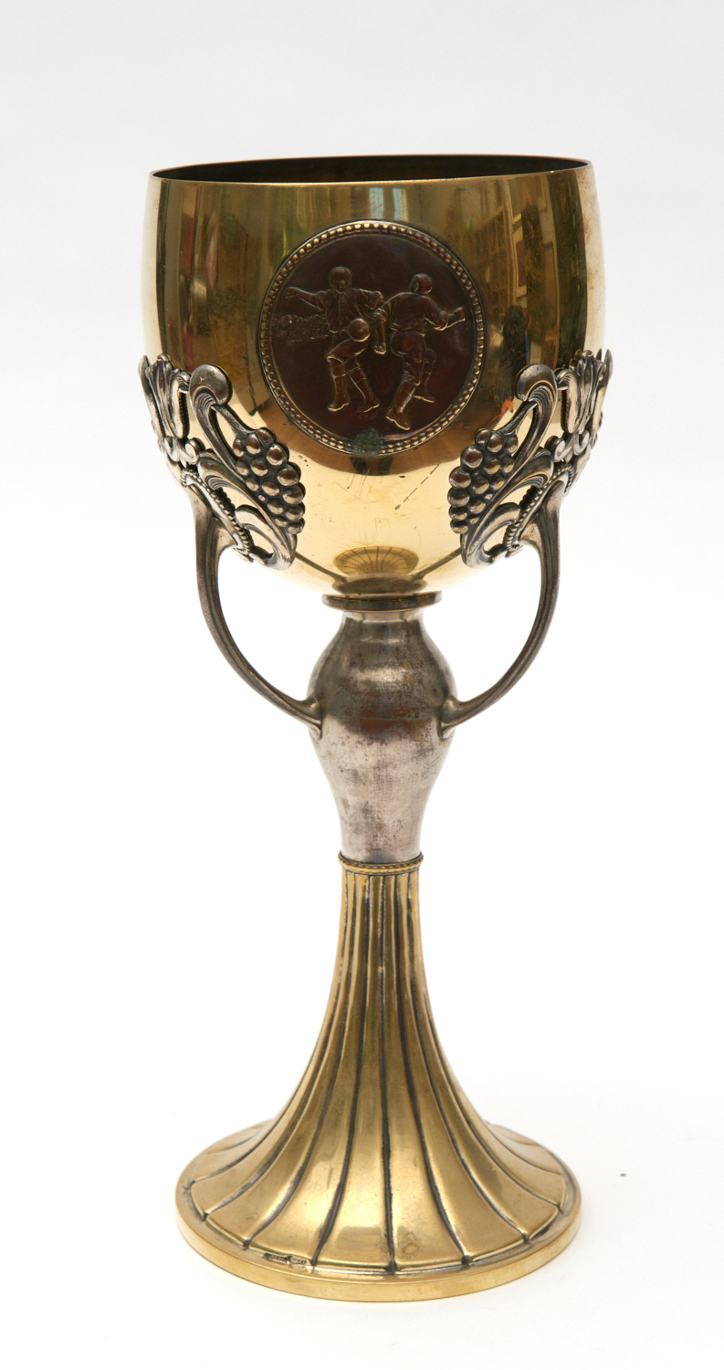 AN ANTIQUE BRASS SOCCER GOBLET