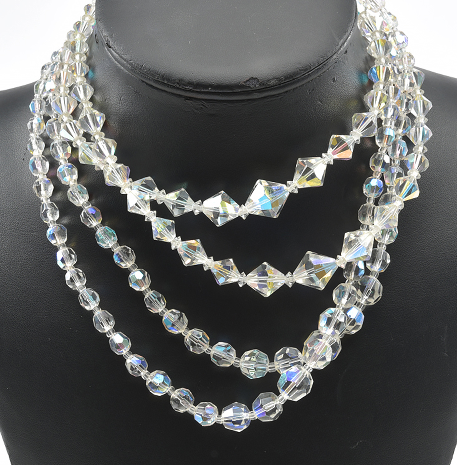 TWO VINTAGE FACETED PASTE BEAD NECKLACES
