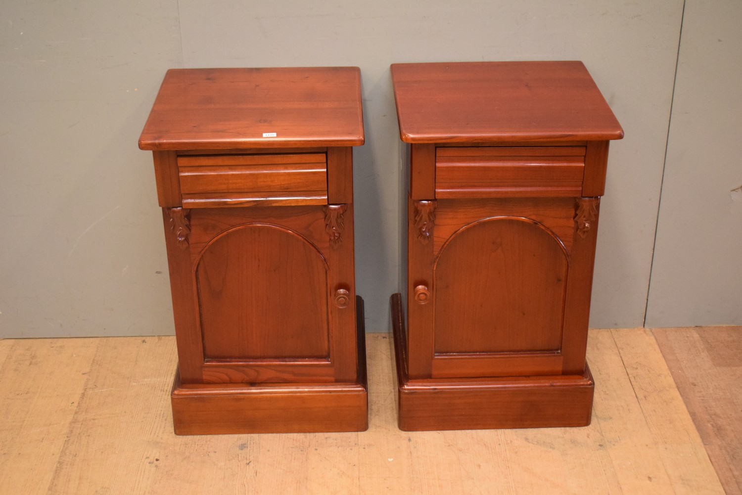 A PAIR OF VICTORIAN STYLE MAHOGANY BEDSIDES (71H X 43W X 42D CM)