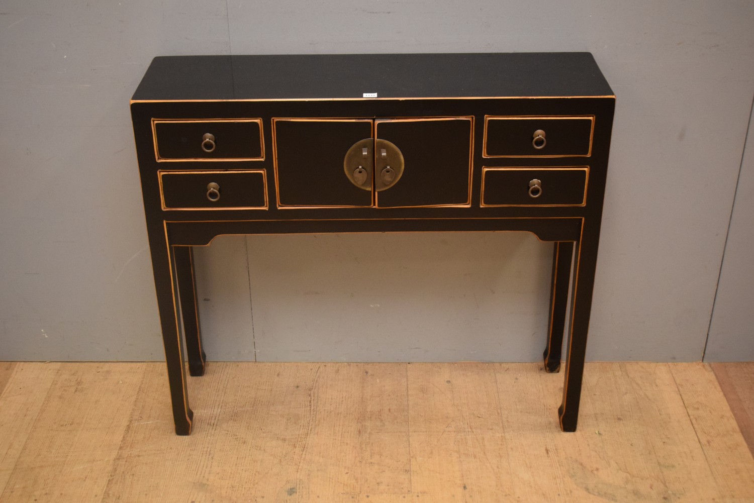A CHINESE EBONISED CONSOLE TABLE (80H X 90W X 25D CM)