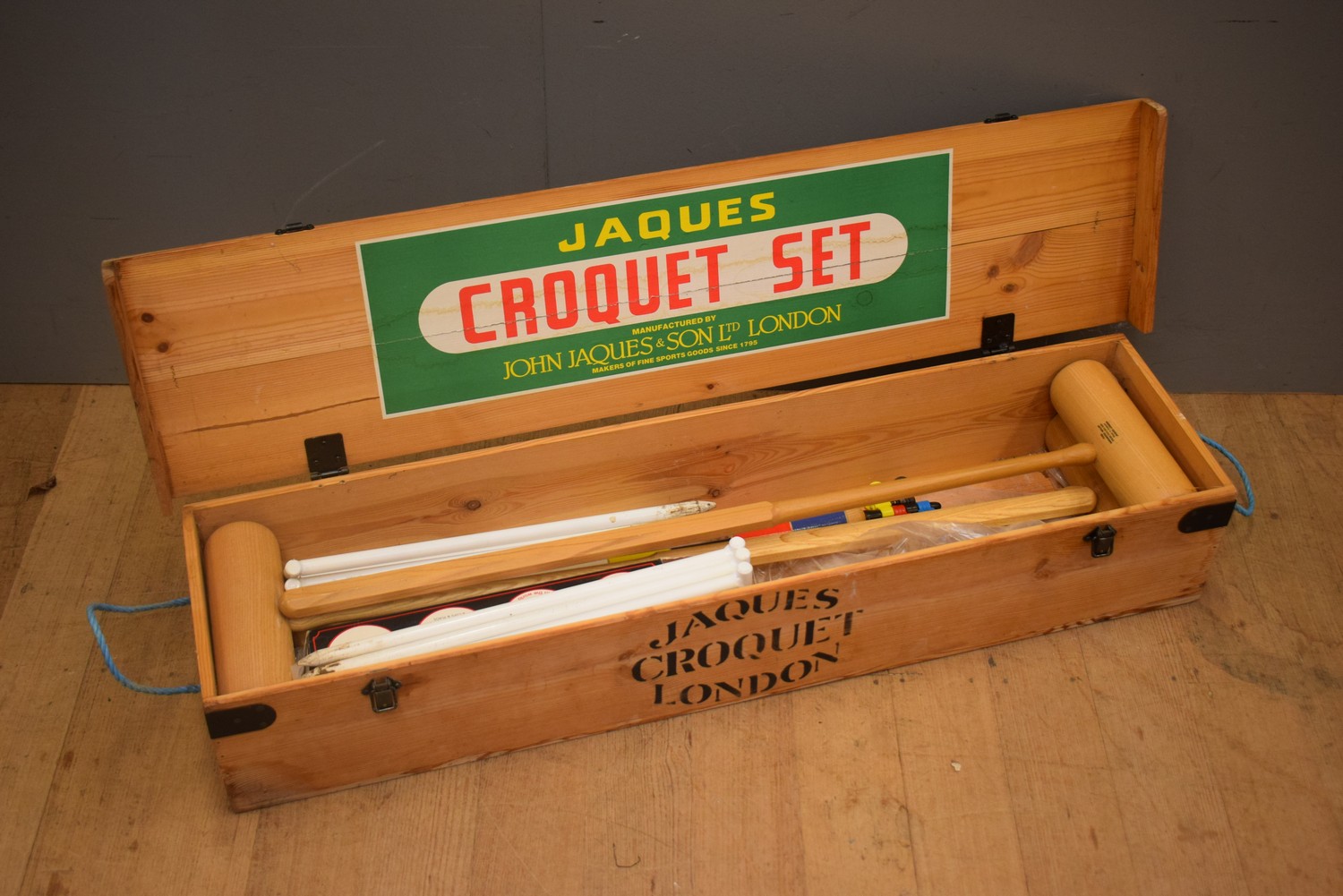 A CROQUET SET IN A CASE (19H X 111W X 27D CM)