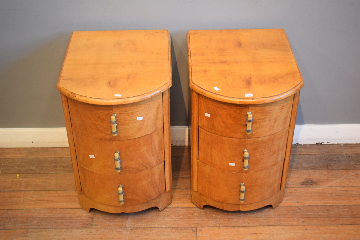 A PAIR OF ART DECO STYLE BEDSIDES IN BLONDE VENEER (62H X 41W X 52D CM)