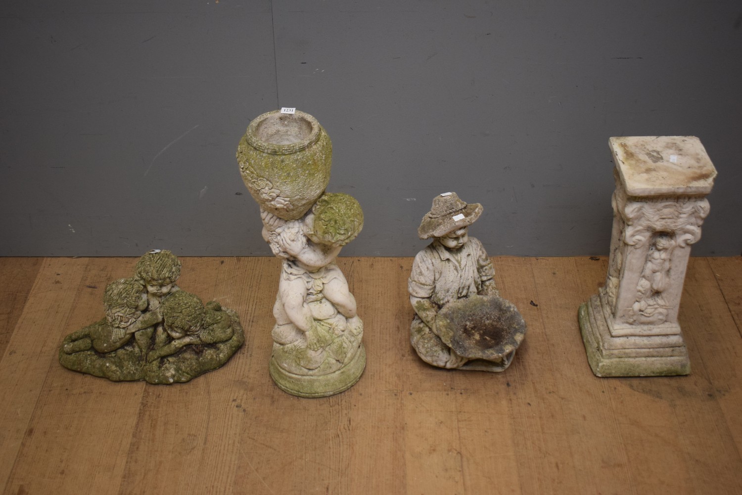 A COLLECTION OF FOUR CONCRETE CLASSICAL STYLE PIECES (LARGEST 60 CM H)