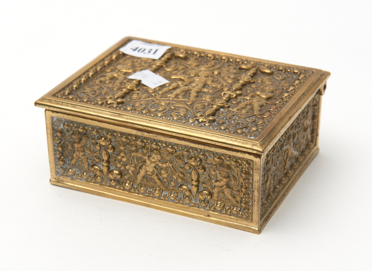AN ERHARD AND SOHNE GERMAN BRASS JEWELLERY BOX