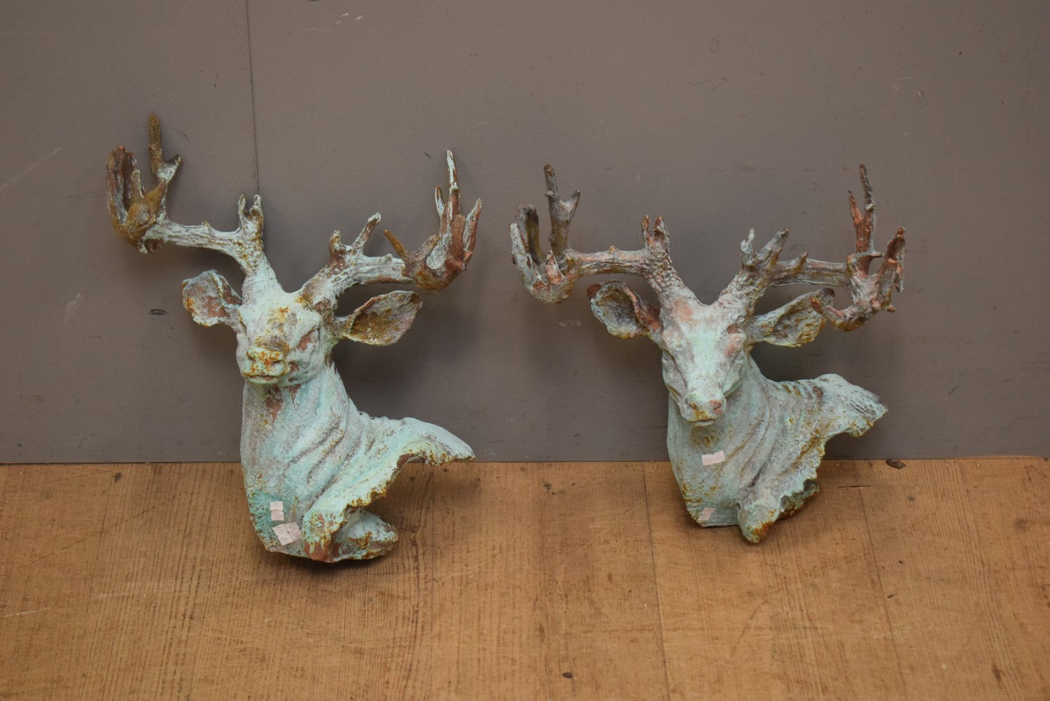 A PAIR OF CAST IRON DEER BUSTS (40H X 36W CM)