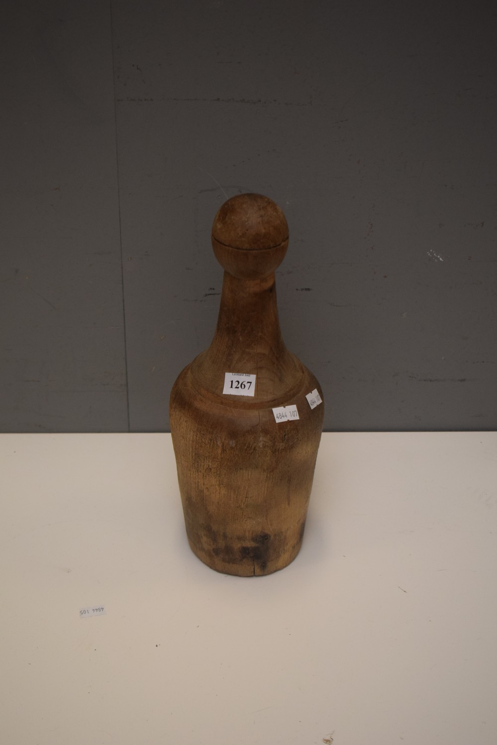 A VINTAGE WOODEN BOWLING PIN/SKITTLE (34 CM H)