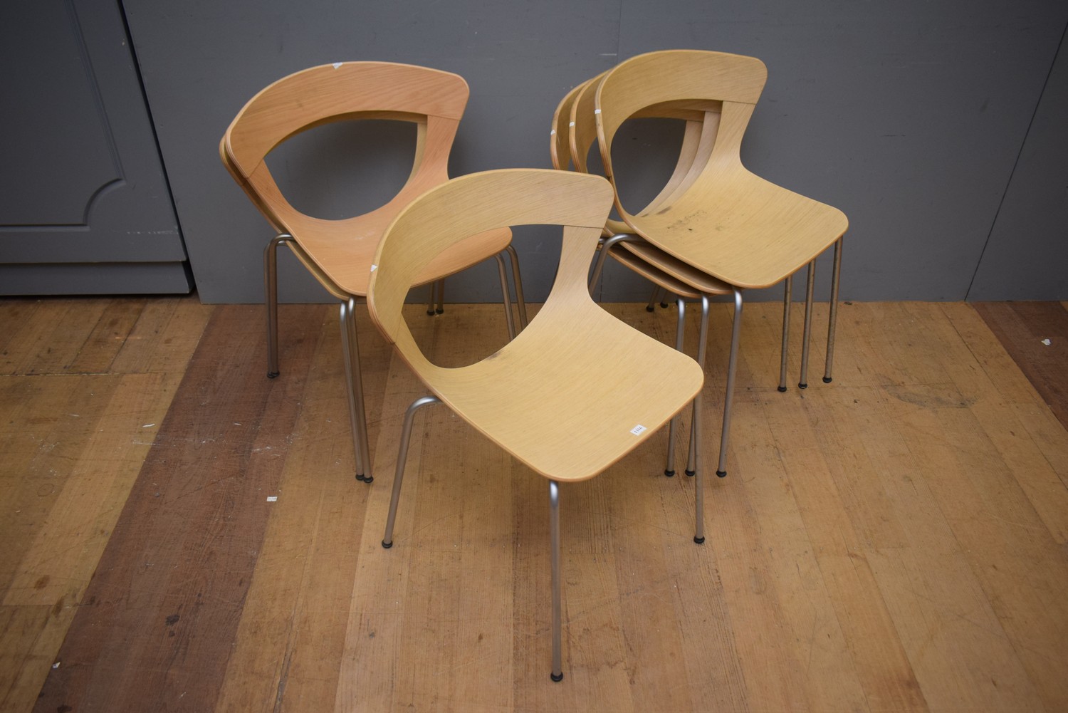 A SET OF SIX PLYWOOD CHAIRS (A/F) (76 CM H)