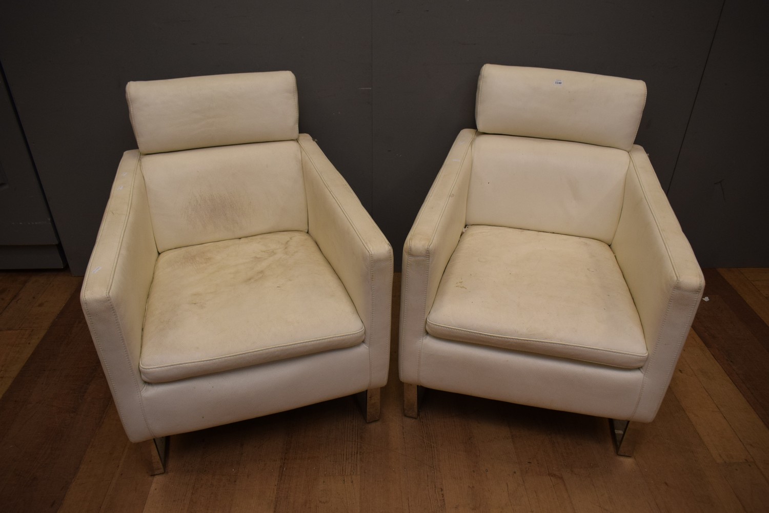 A PAIR OF DOMICIL ARMCHAIRS (A/F) (82H X 66W X 79D CM)