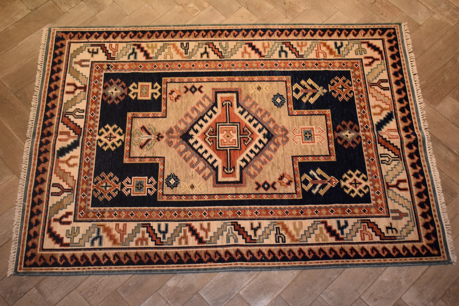 A TURKISH KNOT IN 19TH CENTURY ANTIQUE KAZAK DESIGNER RUG, HAND SPUN WOOL, 239 X 163 CM