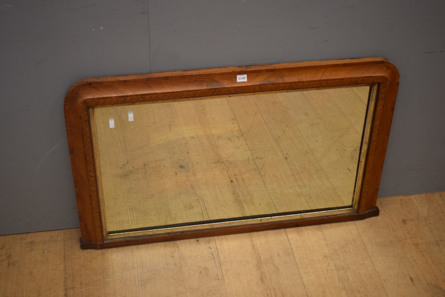 A TIMBER INLAID MANTLE MIRROR (54H X 90W CM)