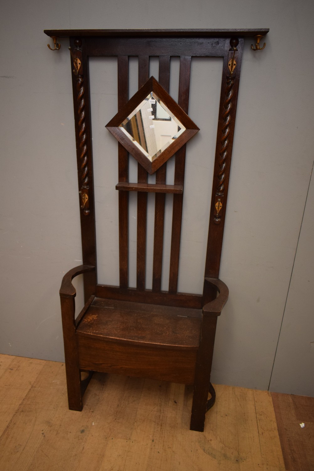 A TIMBER BARLEY TWIST HALL STAND WITH SEAT (184H X 91W X 34D CM)