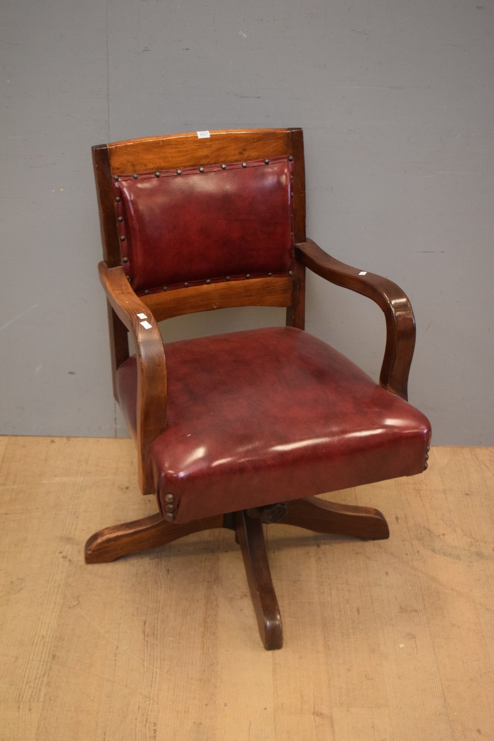 A LEATHER AND TIMBER OFFICE CHAIR (86H X 57W X 60D CM)
