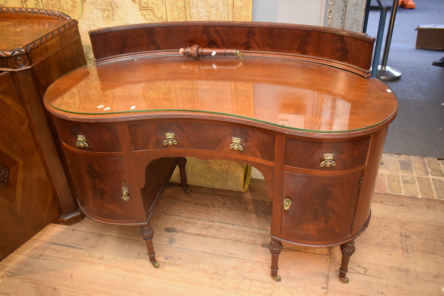 A KIDNEY SHAPED DRESSER (A/F BROKEN LEG) (98H X 137W X 62D CM)