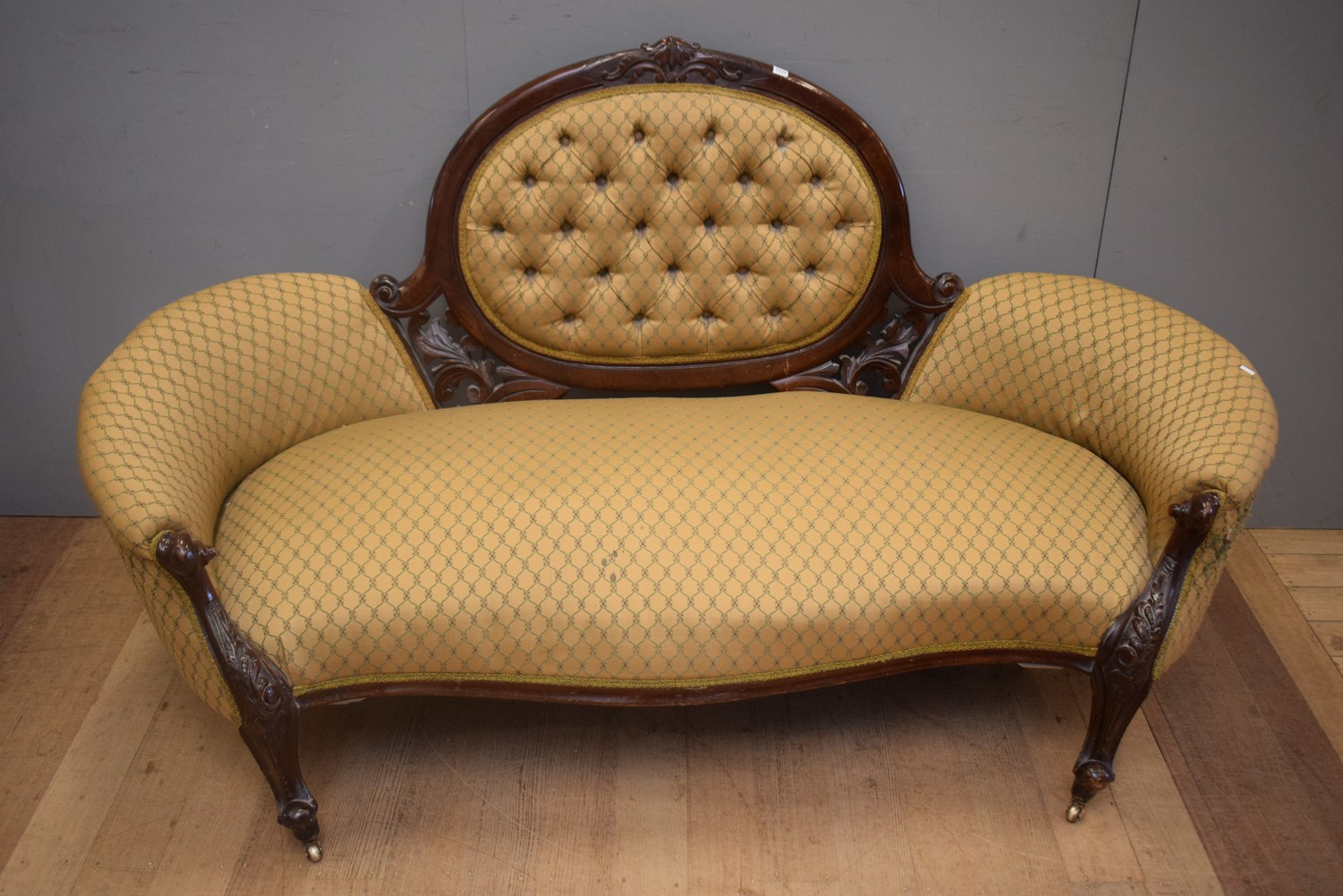 A VICTORIAN THREE SEATER SETTEE (A/F) (96H X 185W X 70D CM)