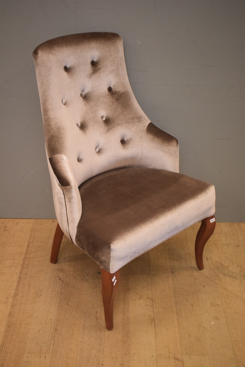 A VELVET UPHOLSTERED BUTTONBACK CHAIR (108H X 65W X 42D CM)