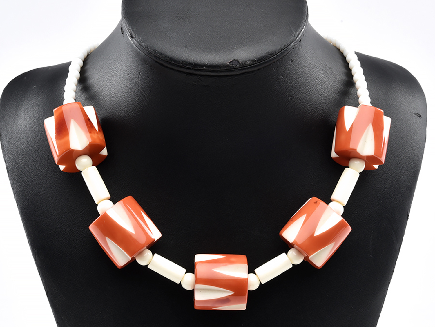 A DESIGNER RED AND WHITE BEAD NECKLACE, TOTAL LENGTH 350MM