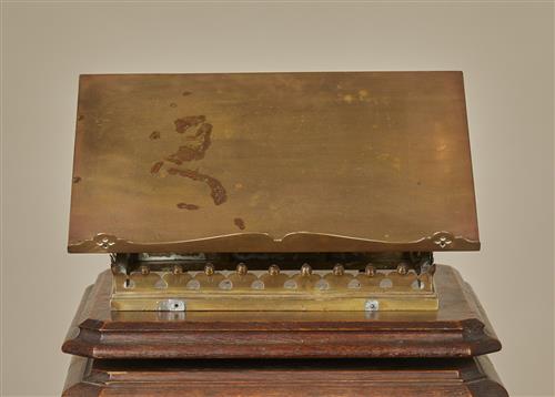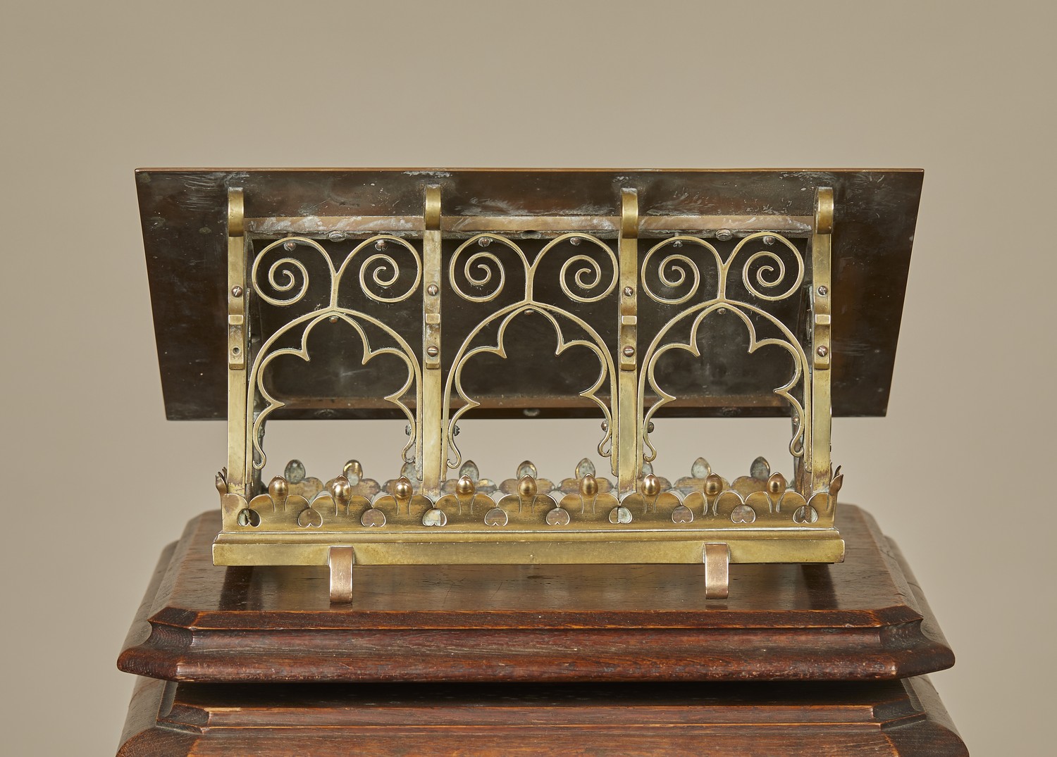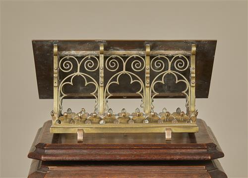 Originally part of a lectern, the solid slope on ogee arched sides.