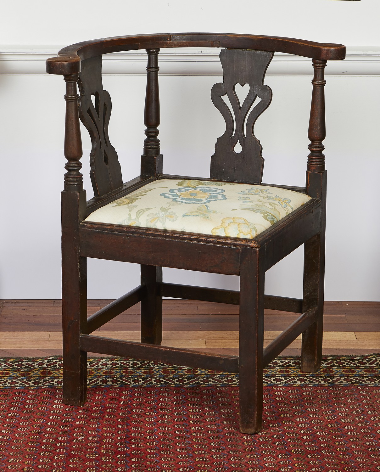 A GEORGE III STAINED BEECH CORNER CHAIR