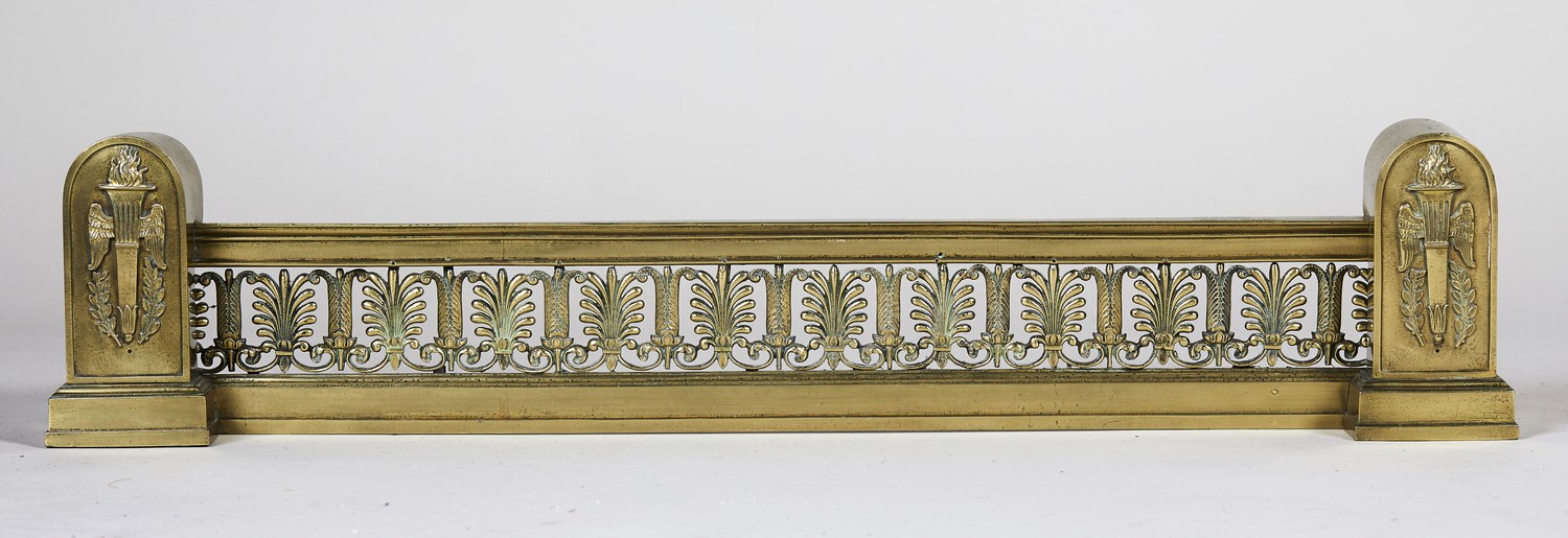 A REGENCY BRASS ADJUSTABLE FIRE KERB