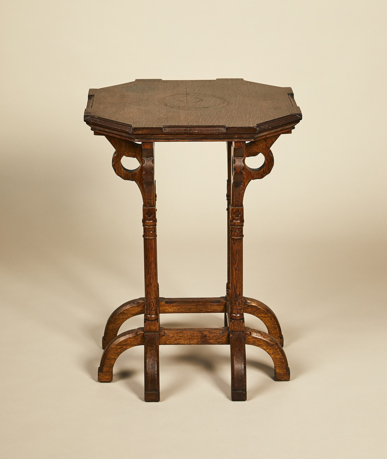 A VICTORIAN OAK GOTHIC REVIVAL OCCASIONAL TABLE IN THE MANNER OF CHARLES BEVAN