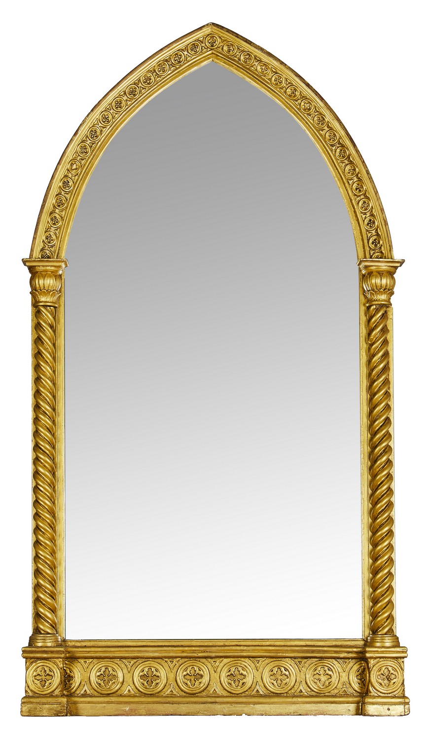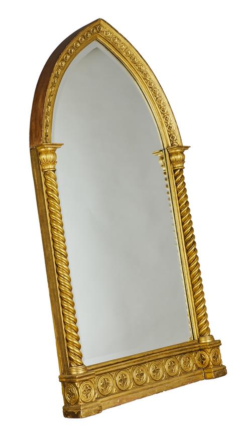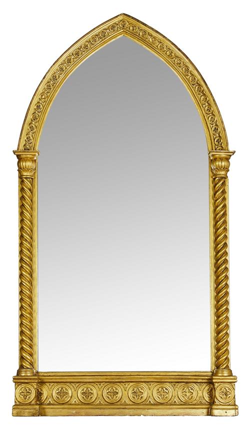 A GOTHIC GILT FRAMED WALL MIRROR, 19TH CENTURY