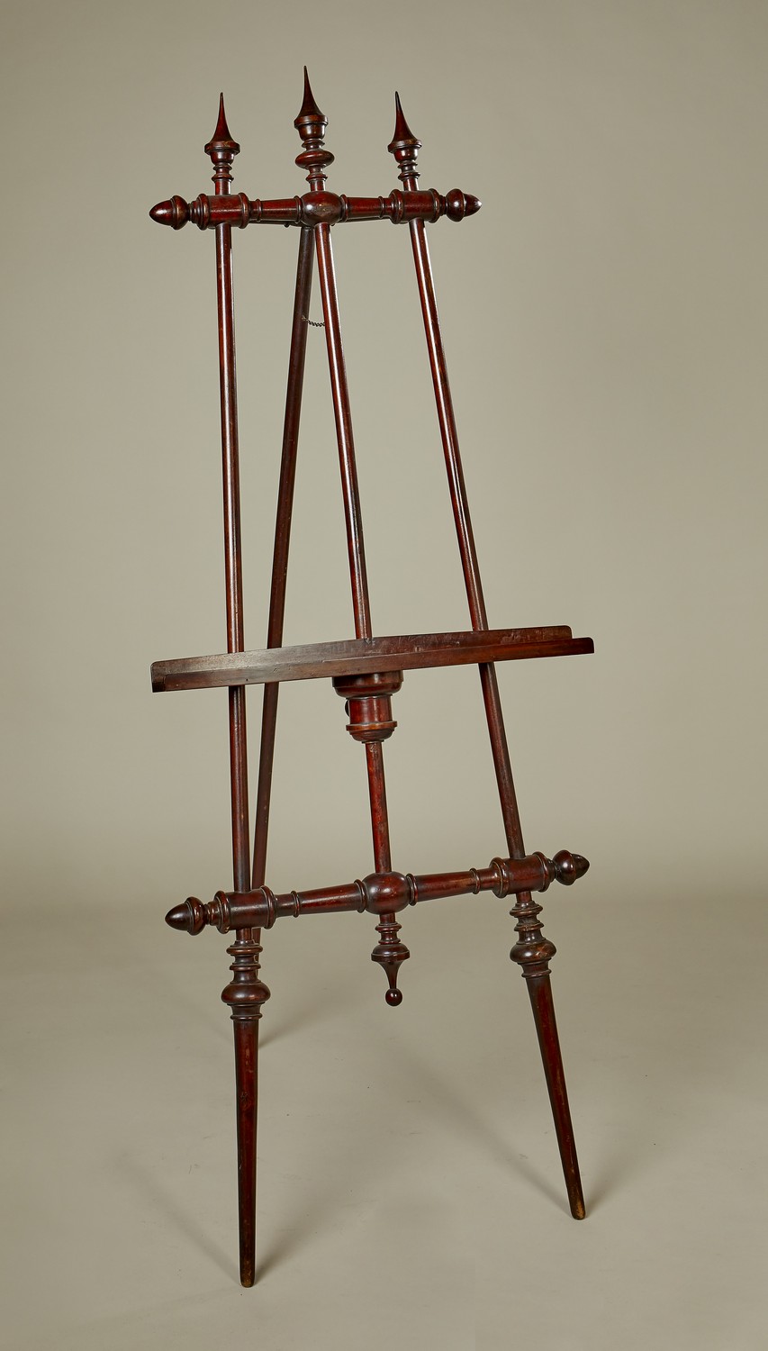 The adjustable picture rest on strut supports with turned finials and stretcher.
