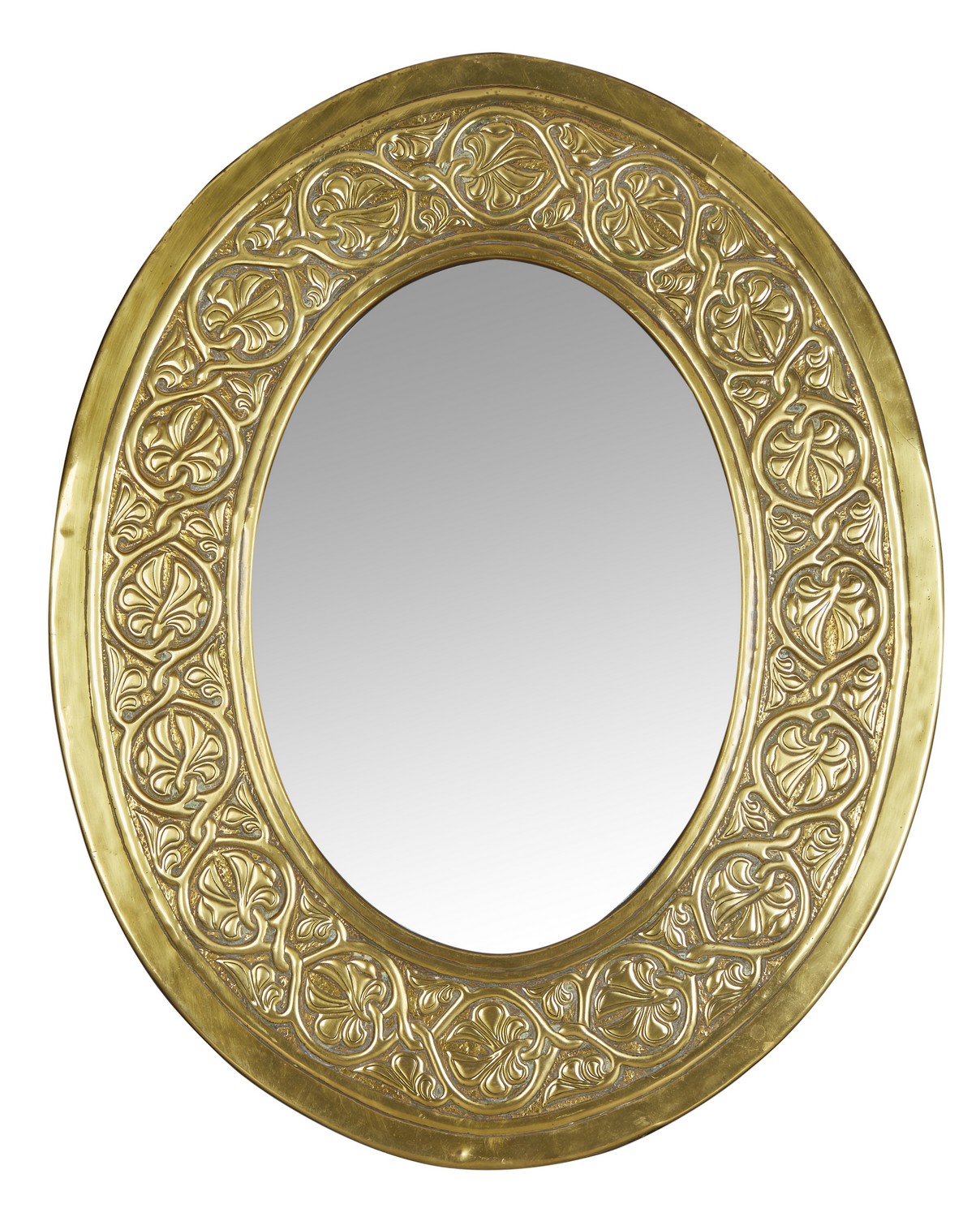 The bevelled plate in a repoussé surround with a design of intertwined stylised foliage.