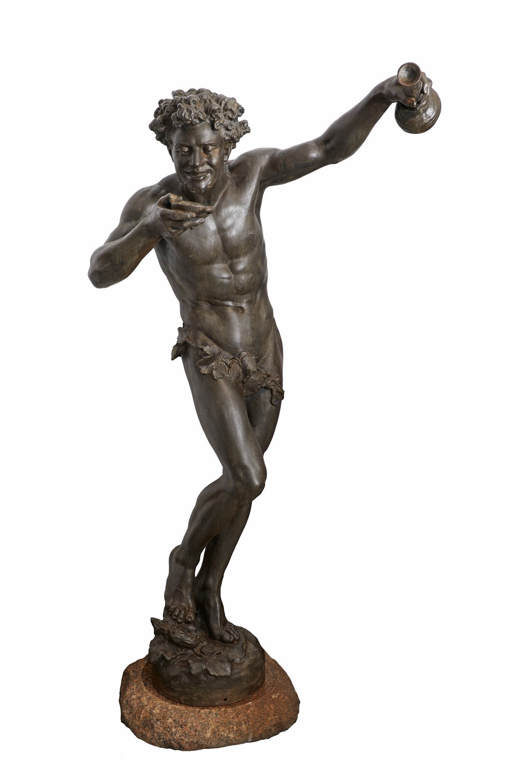 A CAST IRON LIFE SIZE STATUE OF BACCHUS, FRENCH LATE 19TH CENTURY, PROBABLY BY THE VAL D'OSNE FOUNDRY