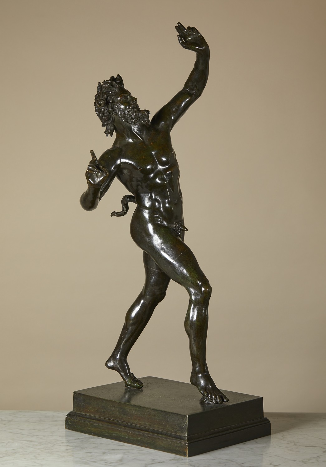 - some wear to patina, most evident on the faun's eyebrows, nose, beard