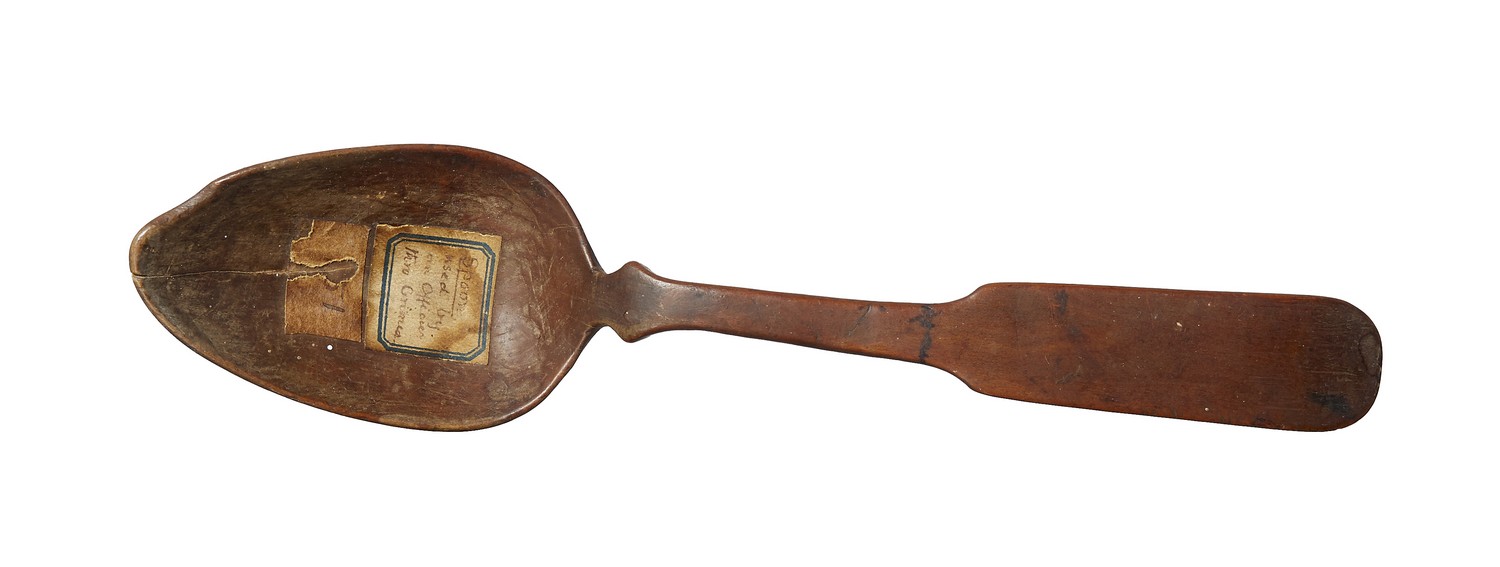 The fiddle pattern spoon with paper label "SPOON used by an officer thro Crimea".