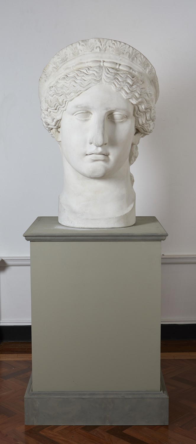 The serene goddess wearing an anthemion cast diadem, inscribed to the lower edge: "274C JUNON COLOSSALE ANTIQUE. FRAGMENT VILLA LUDOVISI".