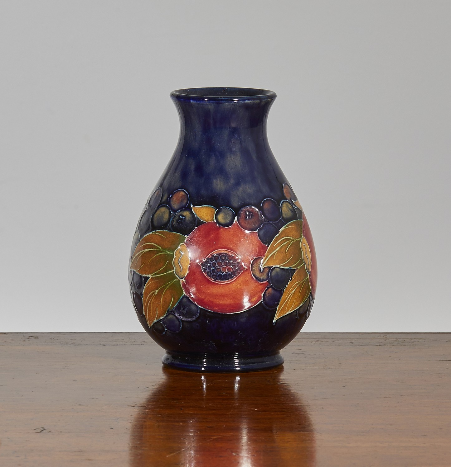 Of baluster form painted with a design of foliage, pomegranates and berries in shades of red, blue and brown, impressed facsimile signature, "POTTER TO H.M. THE QUEEN MADE IN ENGLAND".