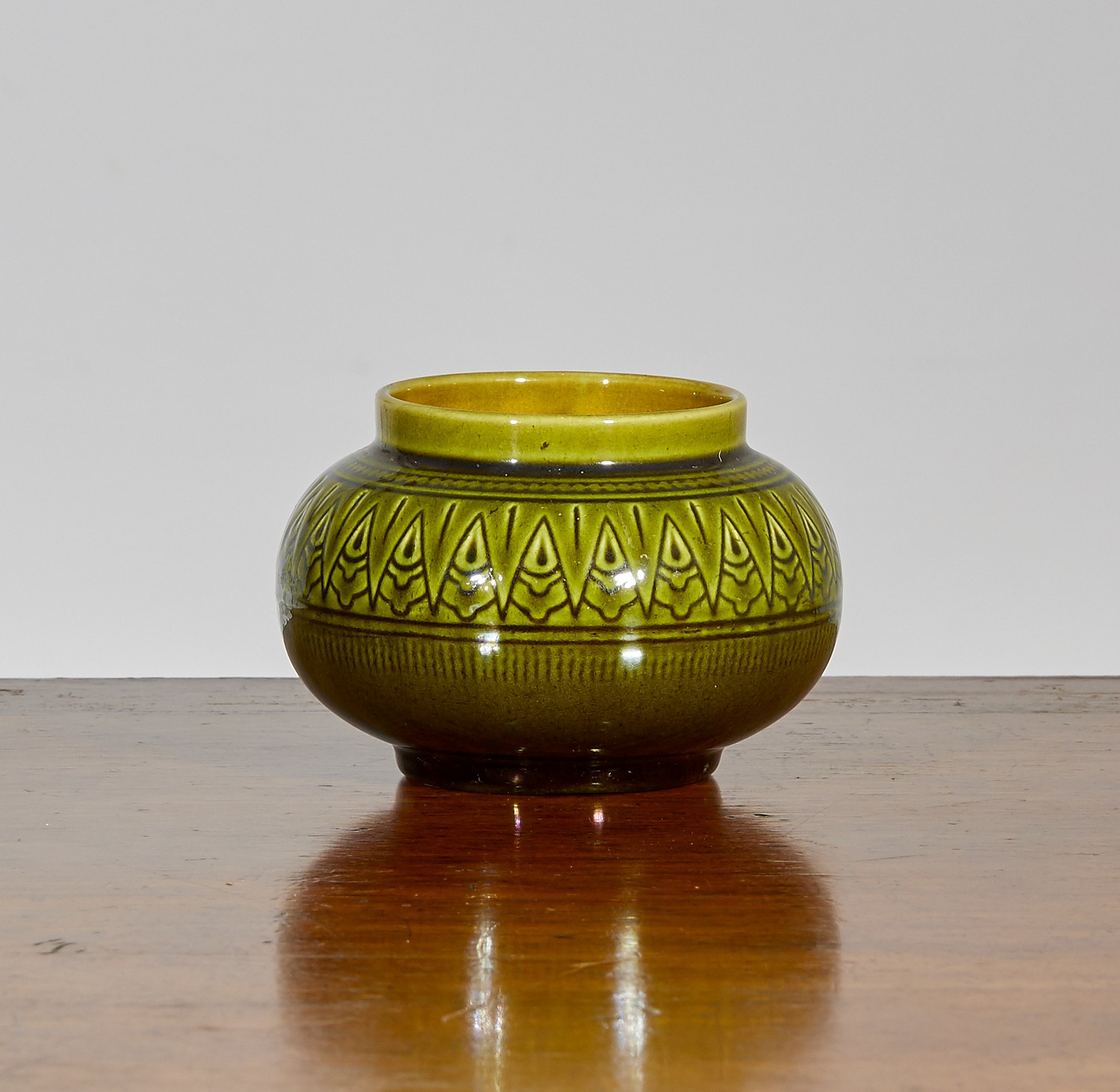 Manufactured by the Linthorpe Pottery, circa 1890, with incised decoration, impressed marks.