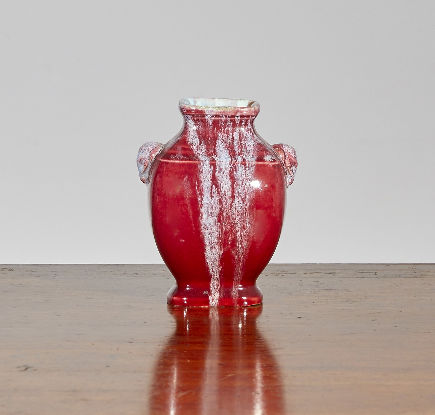 In the Chinese Style, of squat baluster form with elephant head handles, impressed mark TH DECK.