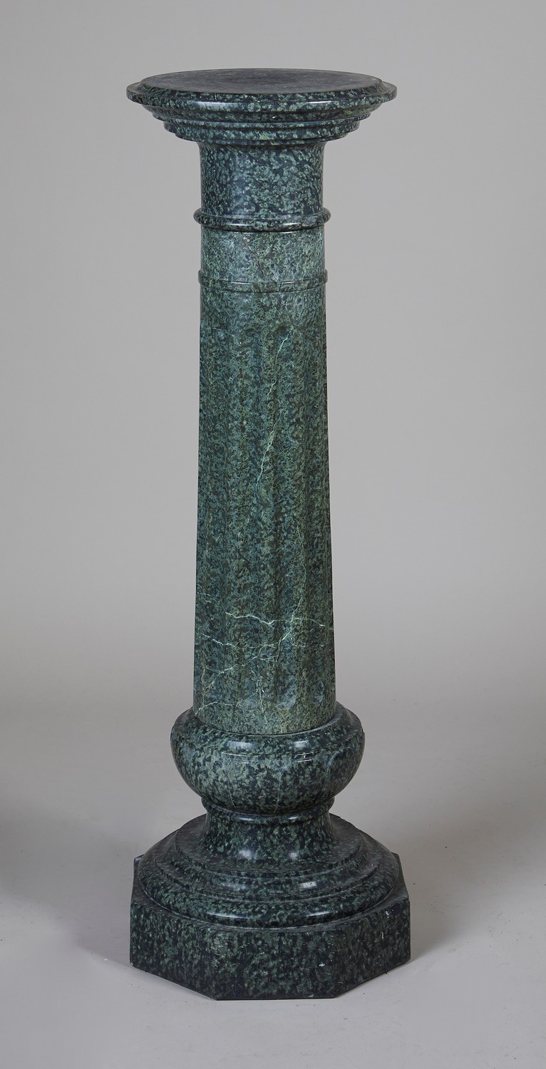 With moulded circular top on a fluted shaft, moulded base and octagonal plinth.