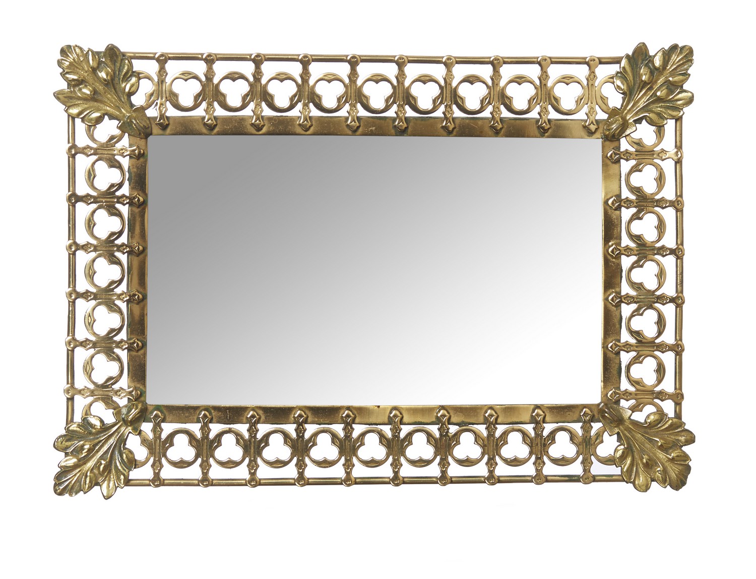 A VICTORIAN GOTHIC BRASS FRAMED MIRROR