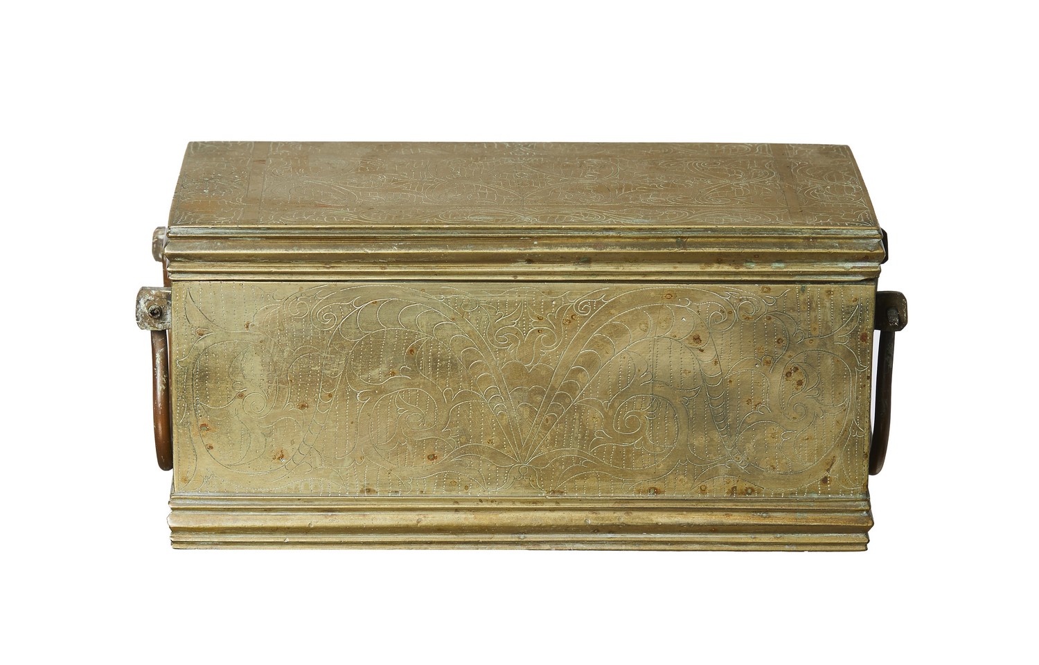 In excellent condition with age expected surface patination to the solid brass and to the copper handles.