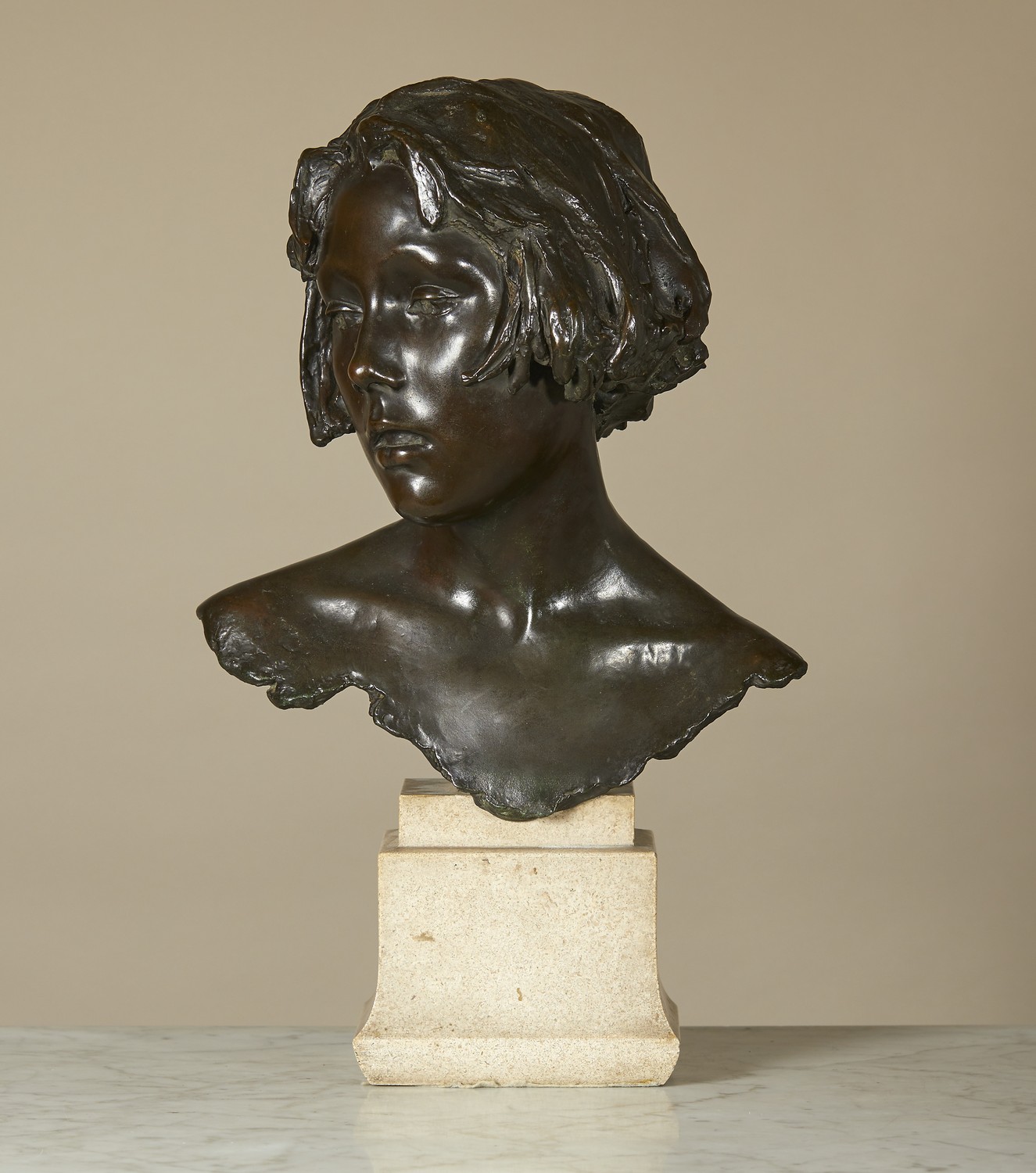 ALFRED DRURY RA after AIME-JULES DALOU (British, 1856-1944) Head of La Boulonnaise c. 1879 marble, onyx base