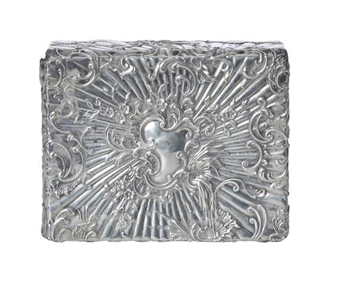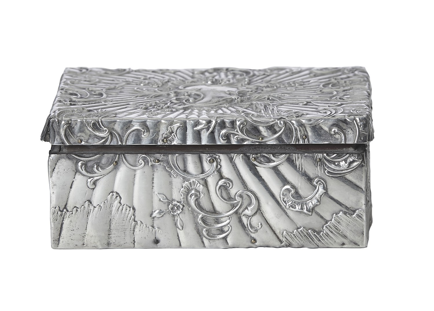 Maker's Mark CM, the cover with a repoussé design of scrolls and rocaille on a sunburst field, Morocco leather base, cedar lined.
